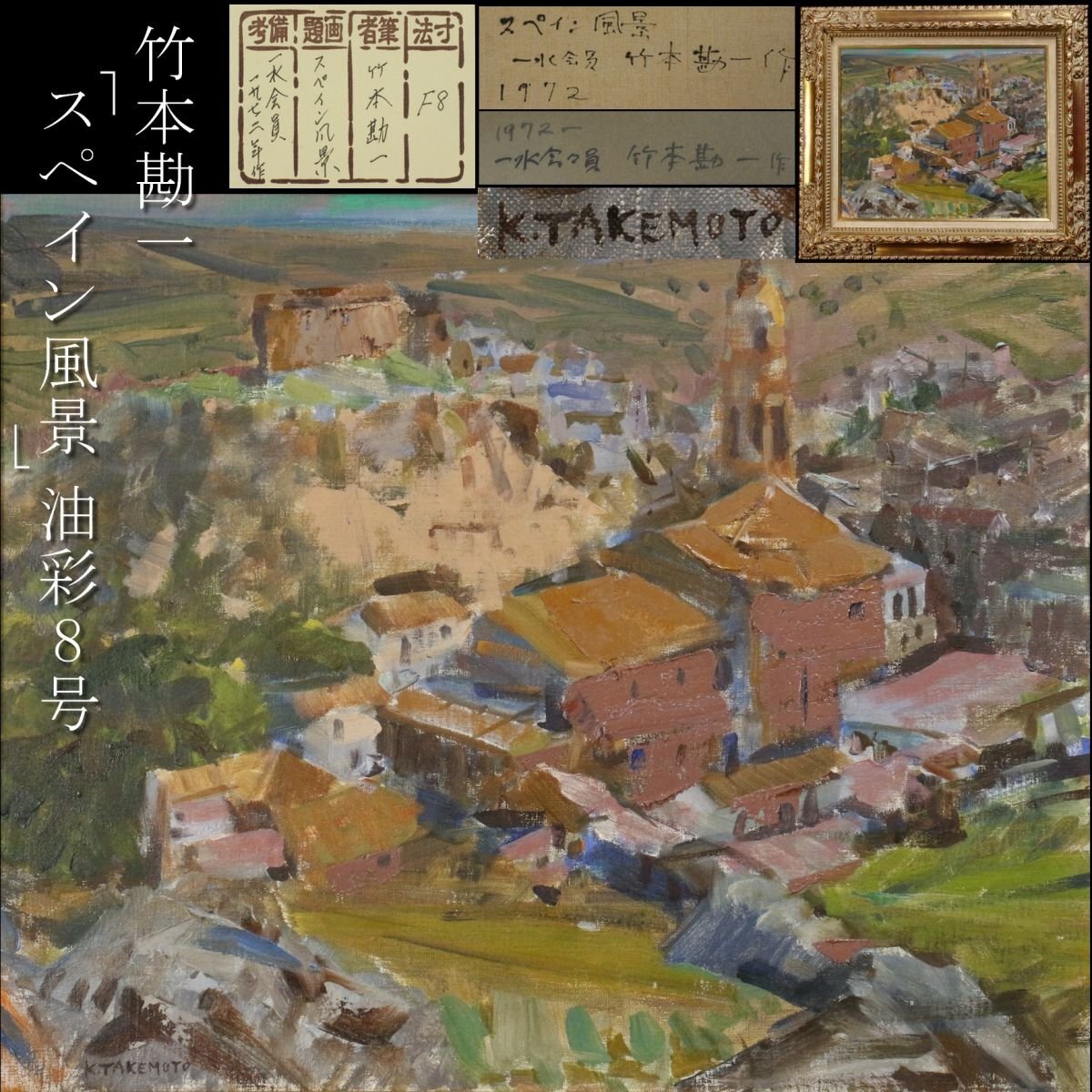 > 【LIG】真作保証 竹本勘一 「スペイン風景」 油彩8号 風景画 一水会員 1972年 コレクター収蔵品 [.W]25.6