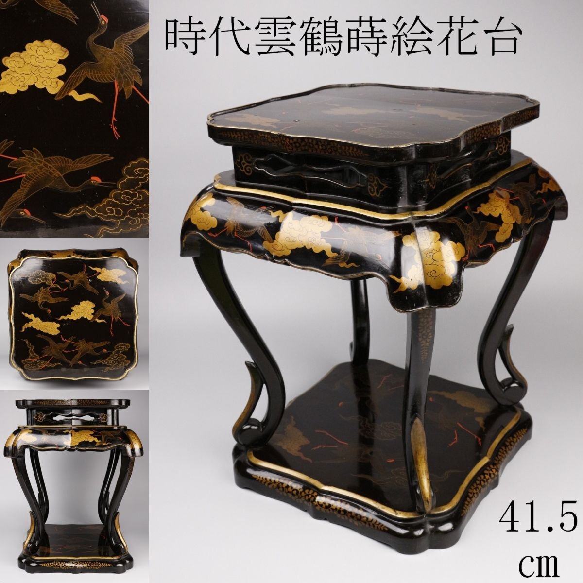 【LIG】時代金蒔絵 雲鶴蒔絵花台 41.5㎝ 飾台 高卓 古美術品 [.WW]25.9拍卖