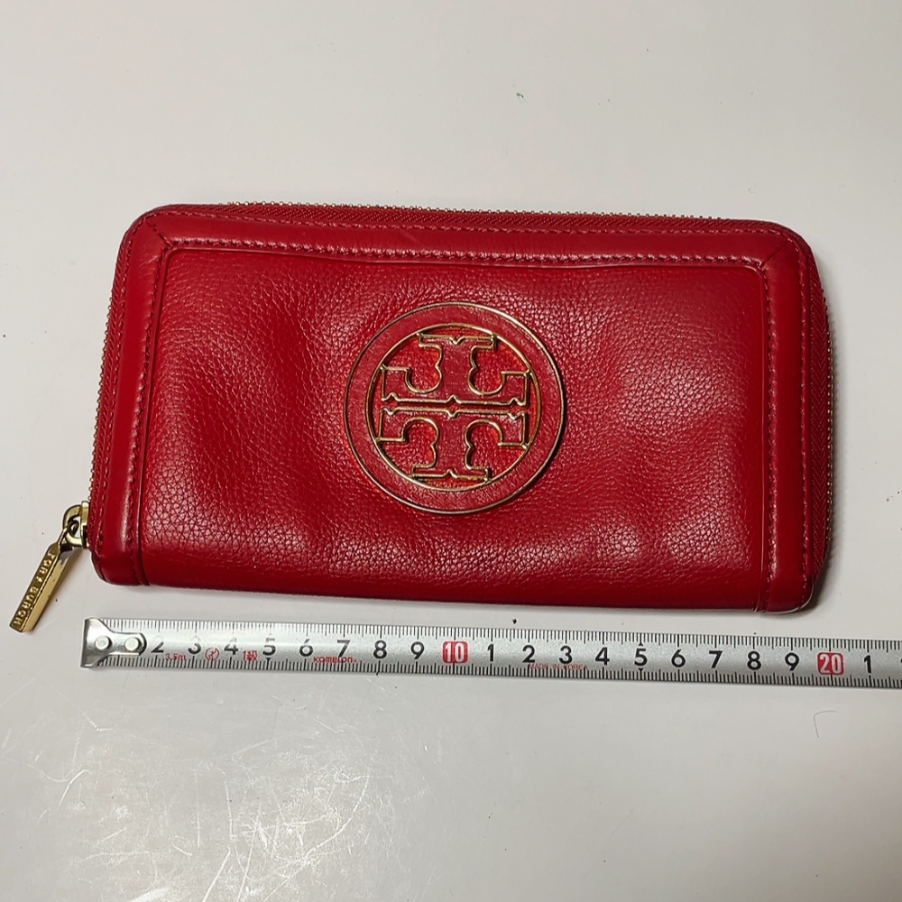 - 即決 送料無料 中古品★Tory Burch トリーバーチ ラウンドファスナー 長財布 札入れ 小銭入れ カード入れ レザー レッド 赤