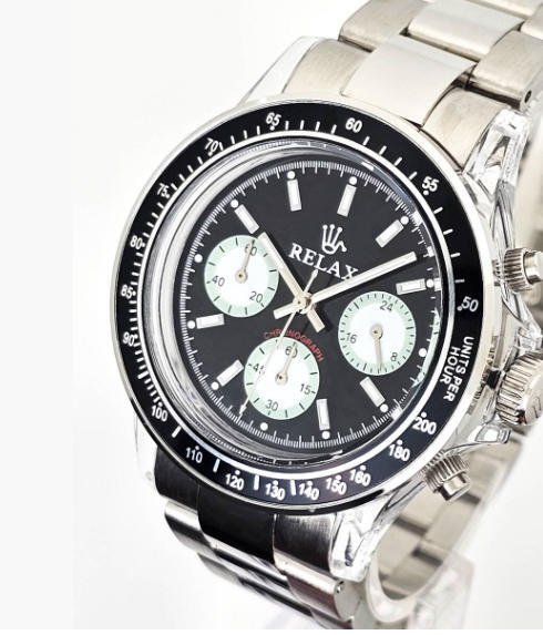 - RELAX リラックス 王冠ロゴ D3-S ヴィンテージカスタム腕時計 クロノ 世界的にも注目されているモデル 黒文字盤 世田谷ベース 所ジョージ