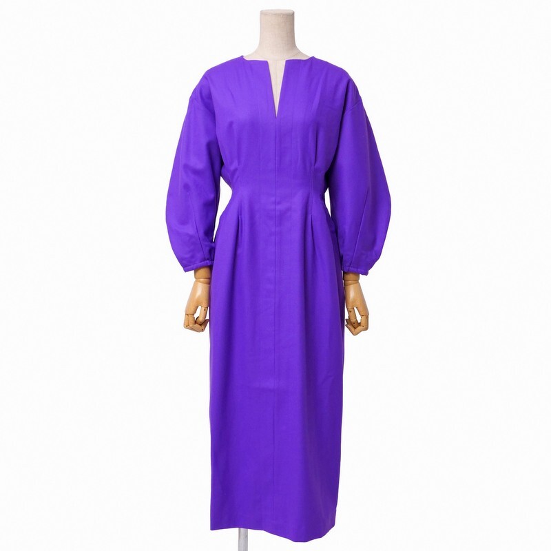 - MI3637#未使用*ヴェルメイユパーイエナ*IENA*ウエストシェイプパフスリーブワンピース*ロング*定価3,3万円+税*パープル系*サイズ38