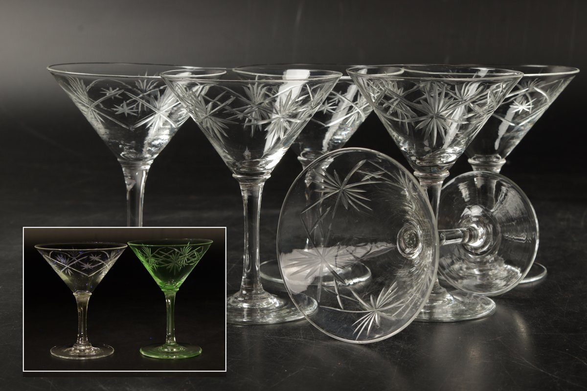 - [URA]ウランガラス/マティーニグラス大3客・小3客まとめて/7-11-70 (検索)骨董/カクテルグラス/ガラス/ウラン/グラス/カップ/カットグラス