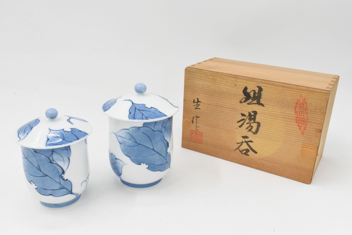 - (1292S 1125H3) 1円~ 未使用 有田焼 生作 組湯呑 共箱 蓋付き 夫婦茶碗 湯呑 茶器 茶具 茶道具 ペア カップ 食器 陶器 伝統工芸品
