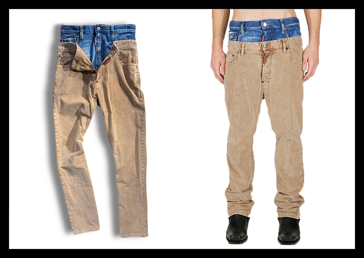 - 定価17.7万 ディースクエアードDSQUARED2 主役級の存在感!レイヤードウエストが目を惹くデニム&コーデュロイパンツ 642TwinPackJean 伊製