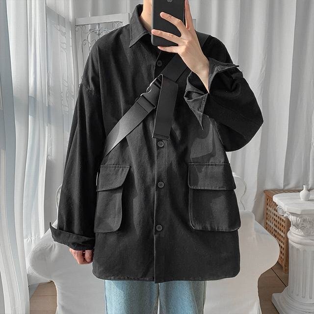 > メンズカバーオール メンズ アウター シャツジャケット 秋春服 ファッション 新作 カジュアル ブラック L