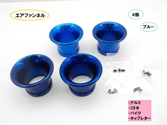 - TH58★☆アルミ エアファンネル(38Φ)(バイク キャブレター)4個セット ブルー(CB400SF Ninja SR400 250TR モンキー GB350)