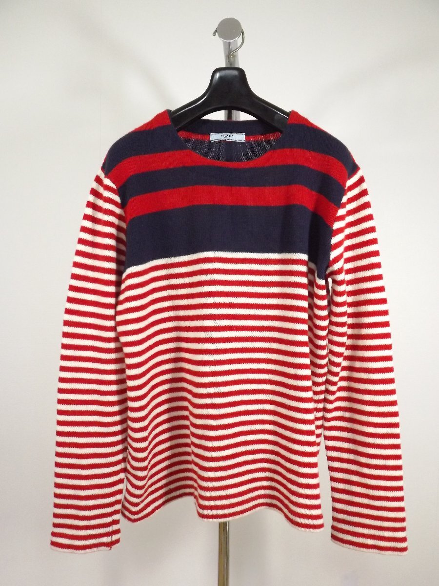 - PRADA(プラダ)イタリア製 メンズ カシミヤ混 ウール ボーダー ニット サイズ44