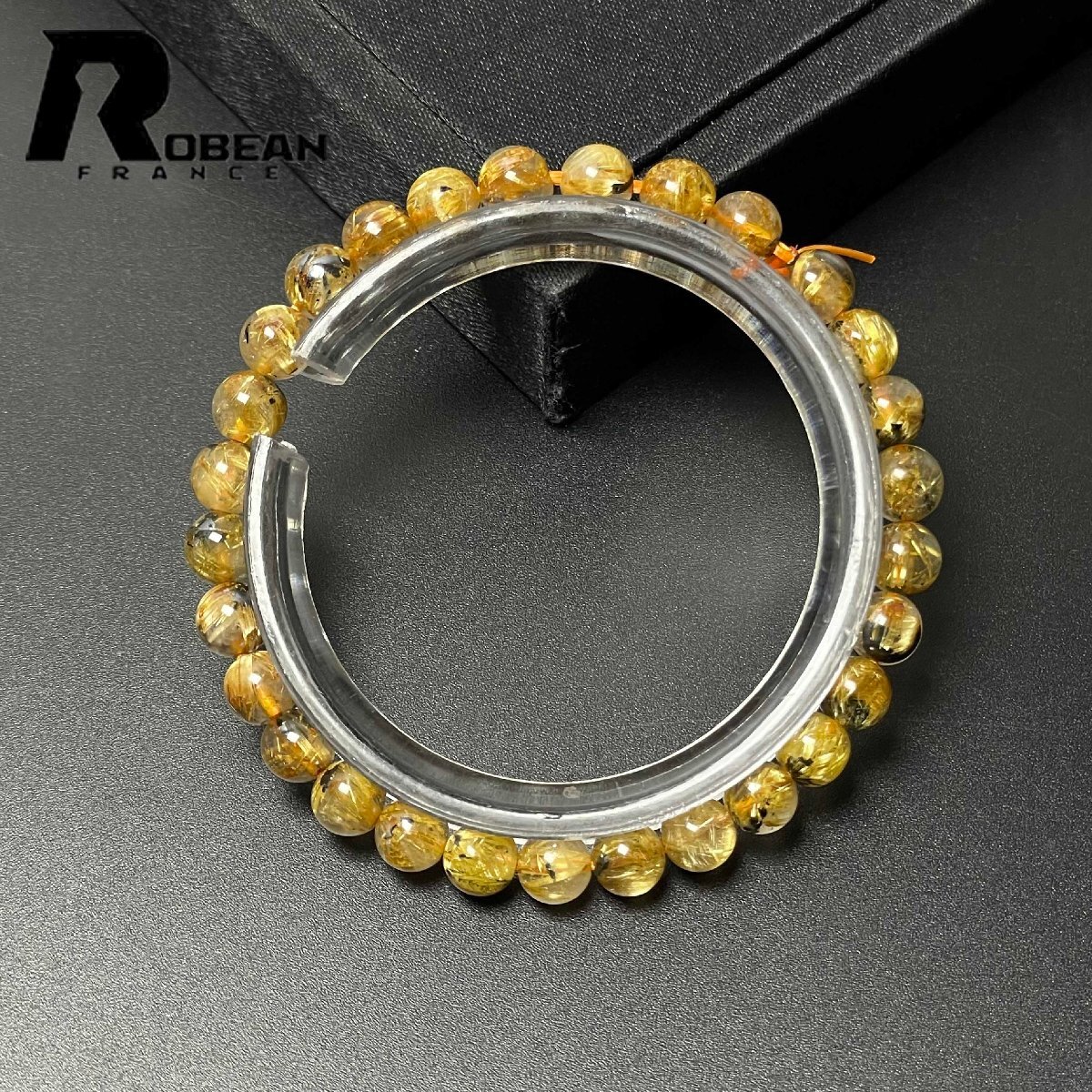 - 上級 EU製 定価6万円★ROBEAN・太陽花タイチンルチル★黄金針水晶 金運 開運 ゴールド ブレスレット パワーストーン 5.8-6.3mm M0714857