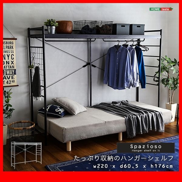 - 棚 シェルフ★新品/たっぷり収納のハンガーシェルフ/ベッド ソファーの上を収納に/ブラック ホワイト/zz