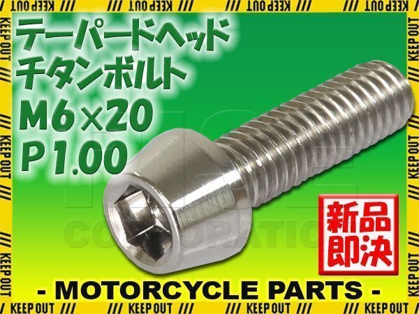 > メール便OK!M6×20 P1.00 チタンボルト 1本 6mm 20mm ピッチ1.00 シルバー テーパーボルト キャップボルト クランクケース バイク