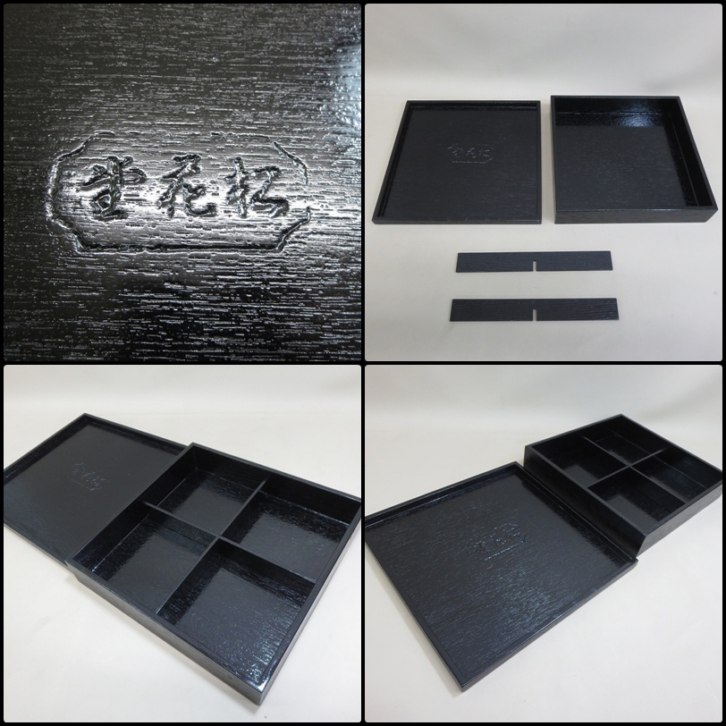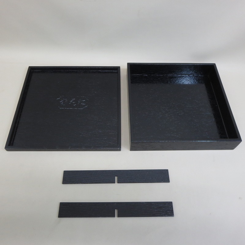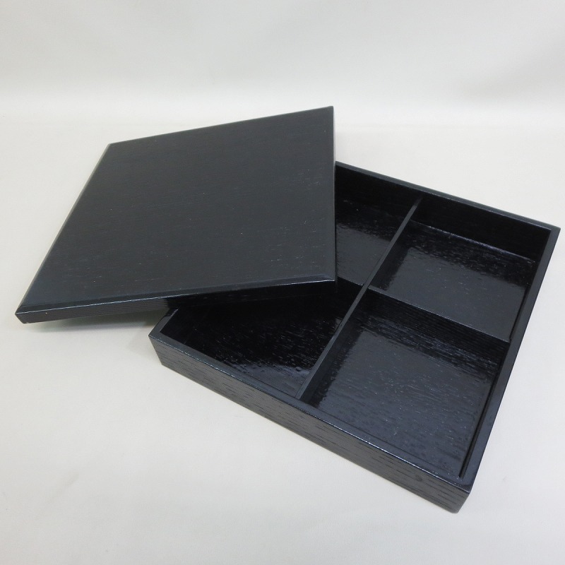 - ◇松花堂弁当5客 黒筋目塗り 木製漆器 26×26×高5cm◇会席料理 茶道具 和食器◇10