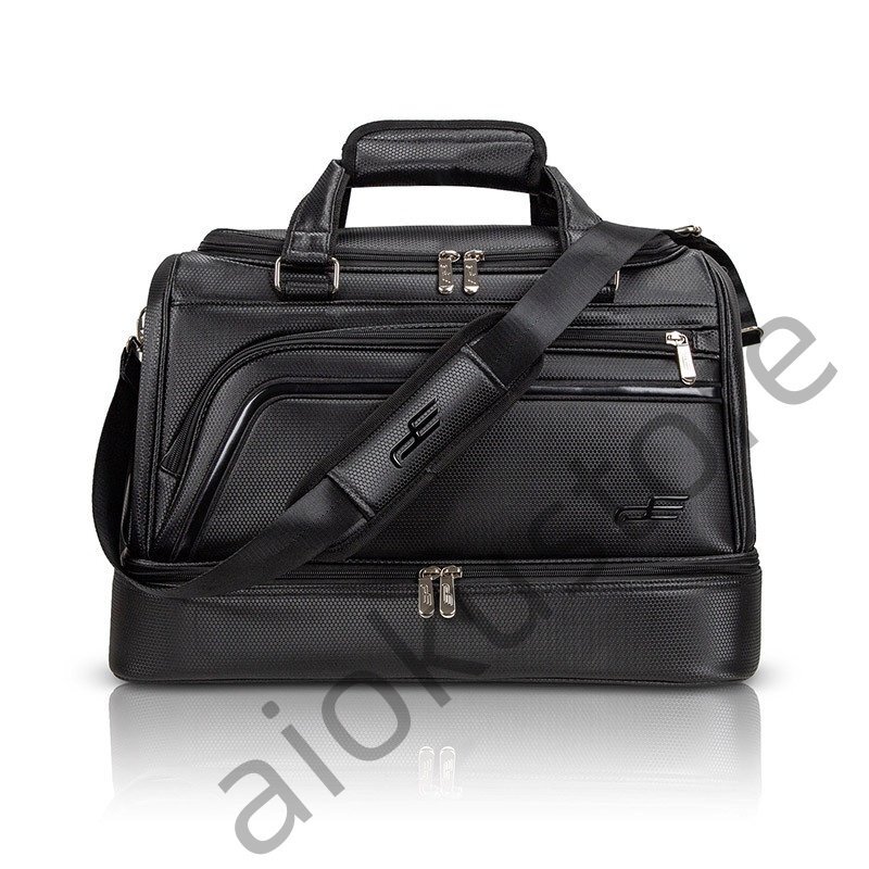 - ゴルフトートバッグ 二層式 ラウンドトート PUレザー 2WAY シューズポケット付き ショルダー付き 防水 大容量 ジム 旅行 ブラック