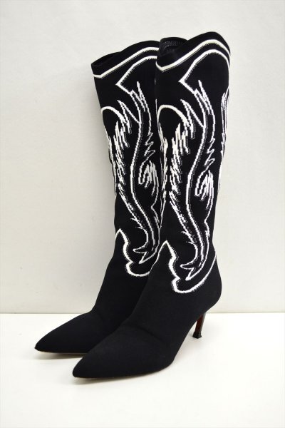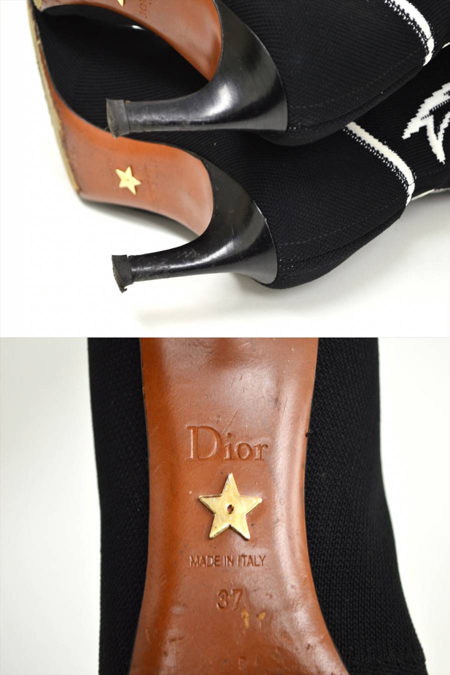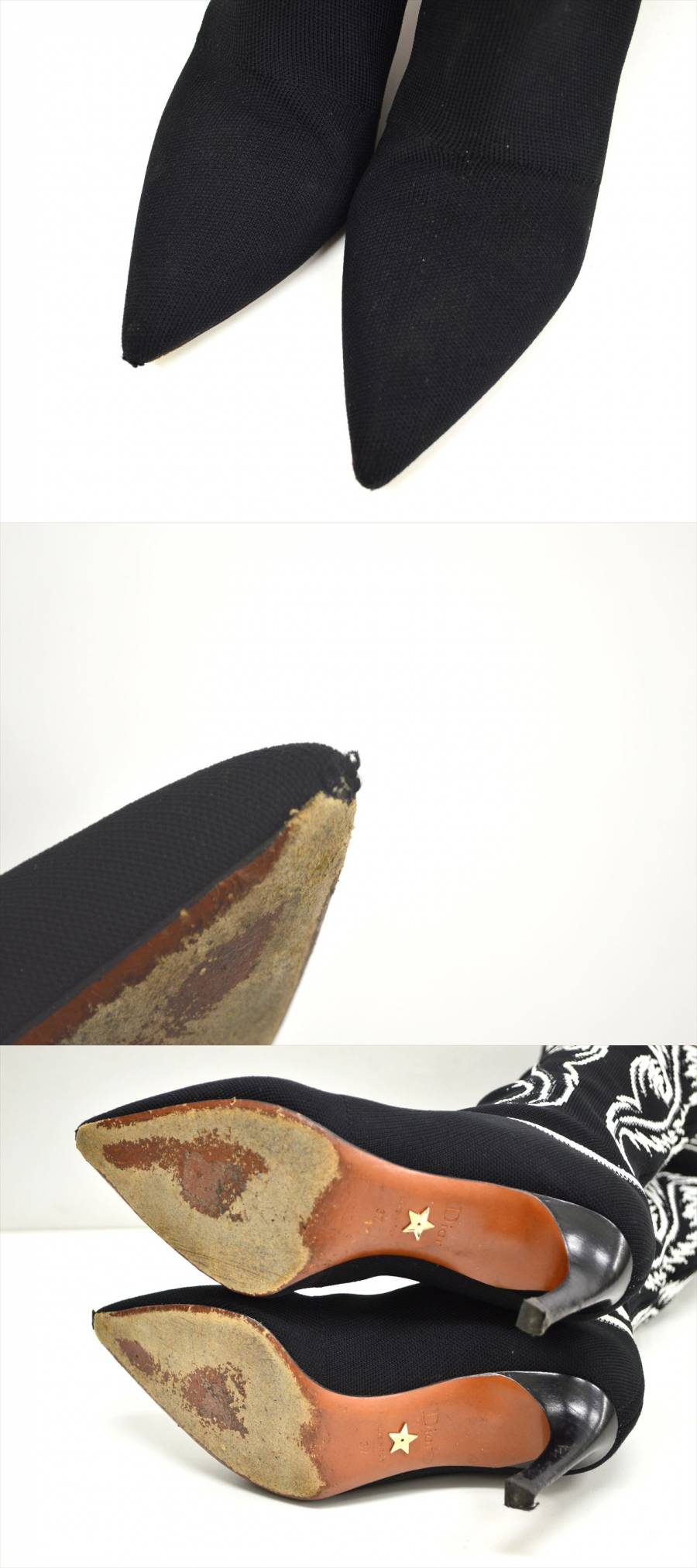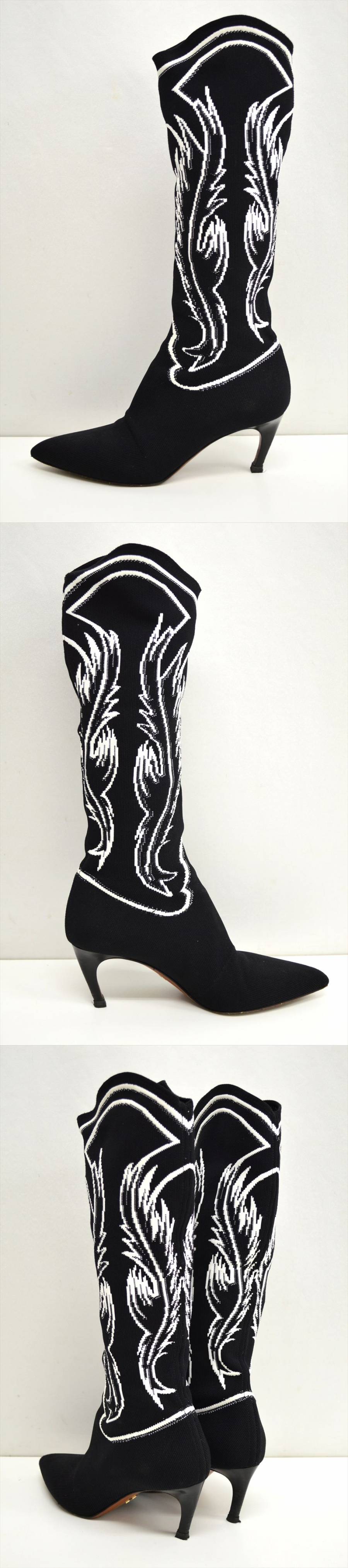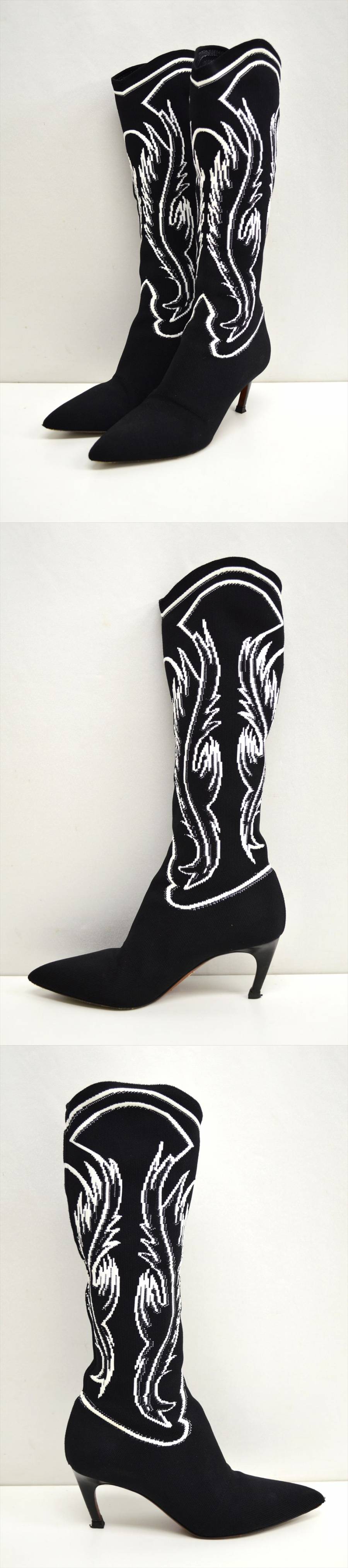 - TE1●中古品●Christian Dior クリスチャンディオール ニットジャガードブーツ サイズ37 黒×白