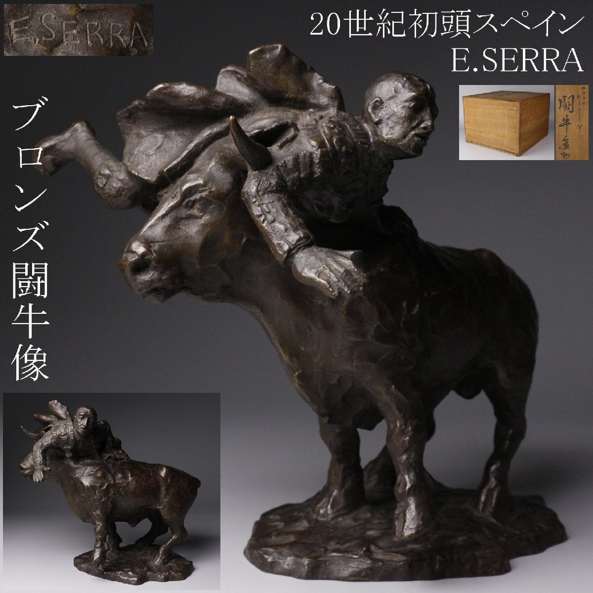 > 【LIG】20世紀初頭 スペイン作家 E.SERRA ユウラルト・セィラー ブロンズ 闘牛像 置物 24㎝ 5kg 時代箱 [.QI]25.11