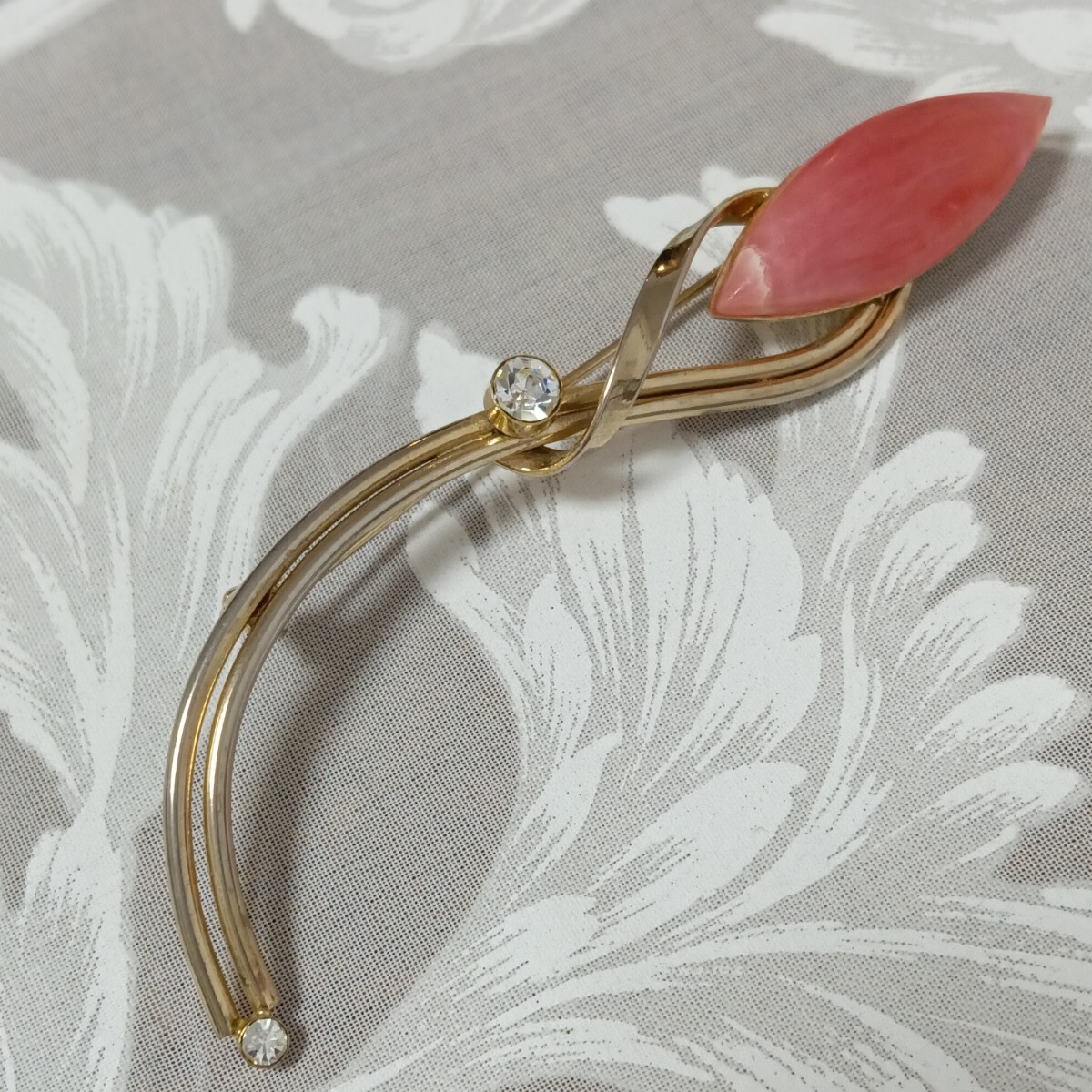 - 天然石 インカローズ ゴールドカラー ビジュー ブローチ 美品