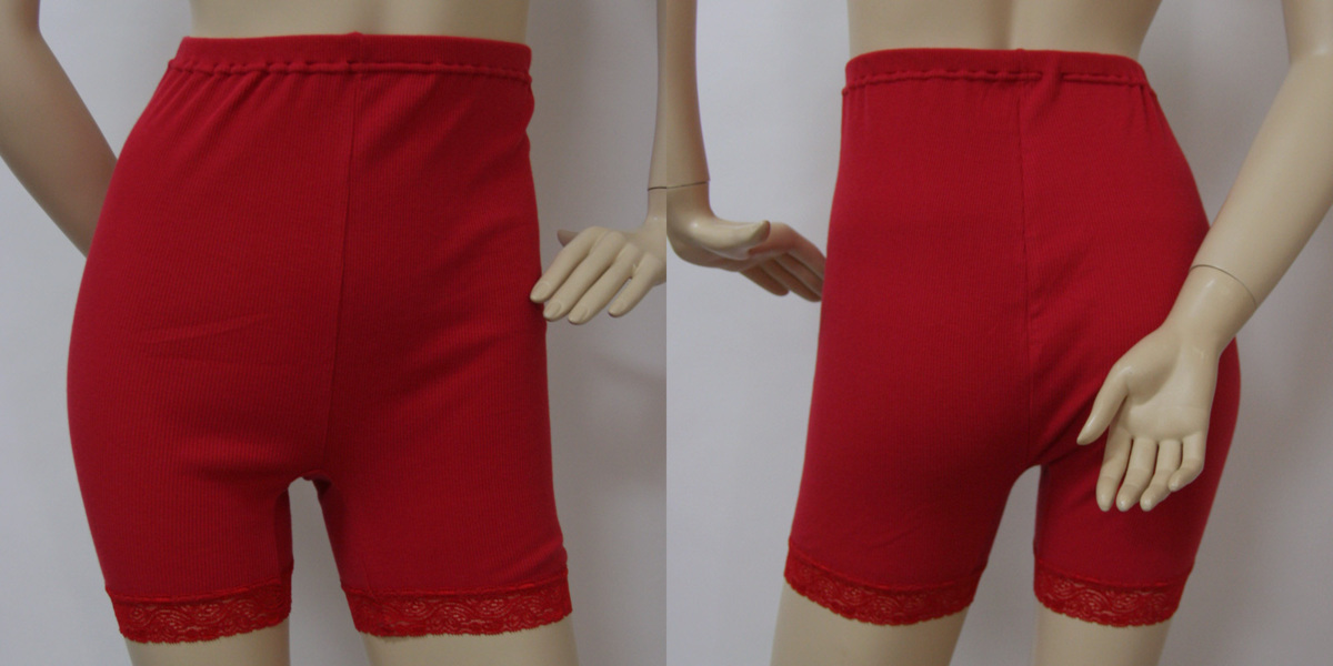 > 送料無料◆超お得◆2枚組◆安心と信頼の【日本製】◆綿100%◆大きいサイズ◆リブ編み◆赤いパワー◆ズロース◆3分丈ショーツ(4L~5L)レッド