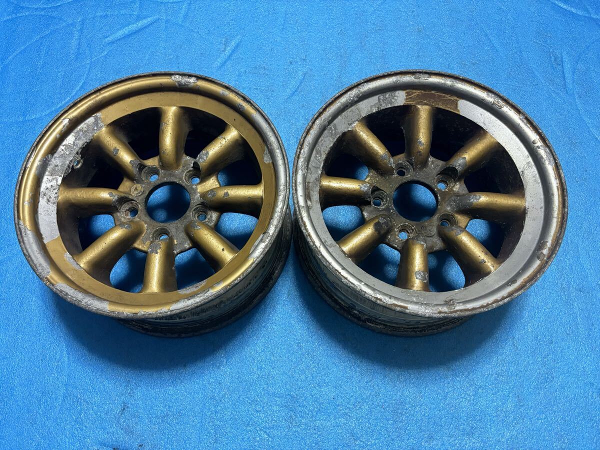 > 旧車 ワタナベ 14インチ 14X6.5J +7(実測) PCD 114.3/5H 中古2本 当時物 深リム