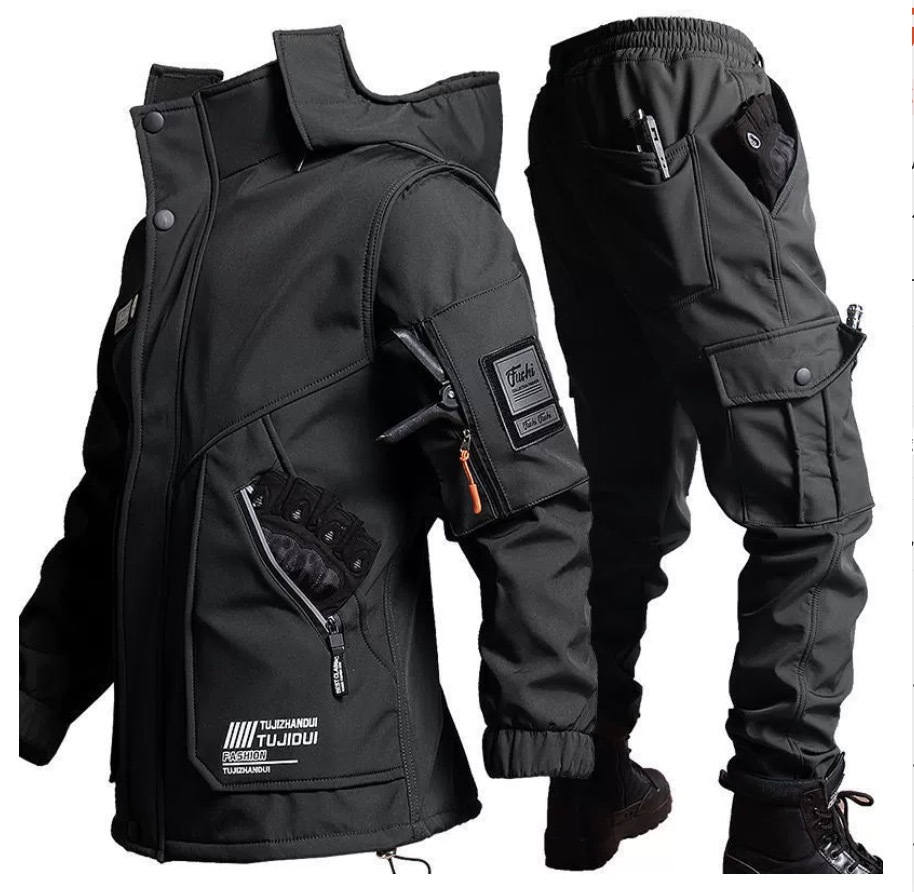 - 秋冬新作 防水防風ジャケット 防寒対策 上下セット アウトドアスポーツウェア 釣りセット 釣り服 ブラック