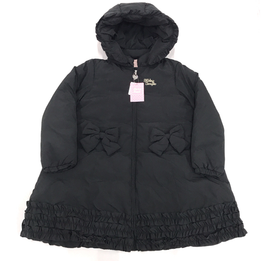 > 美品 メゾピアノ サイズ 140 フリル リボン ダウン コート キッズ服 黒 フード脱着可 タグ付き mezzo piano