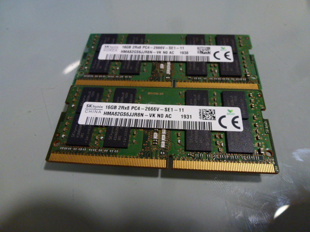 > ノートPC用メモリー Skhynix DDR4 PC4-2666V 16GB×2 合計32GB BIOS起動確認済 ③