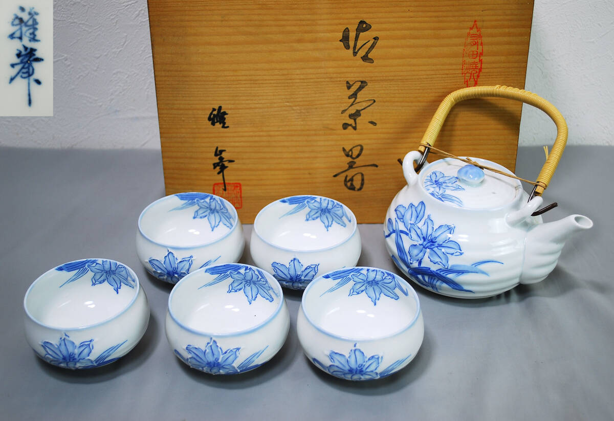 - 有田焼 雅峯 茶器揃 急須 湯呑み 5客 茶器セット/検索用 茶道具 番茶揃 煎茶器 工芸品【11052】