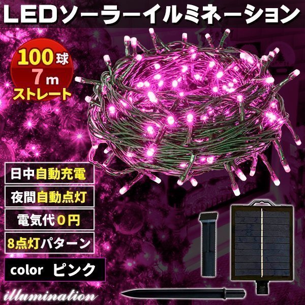 - ソーラー イルミネーション 屋外 クリスマス ストレート 屋外用 イルミネーションライト 100球 ピンク