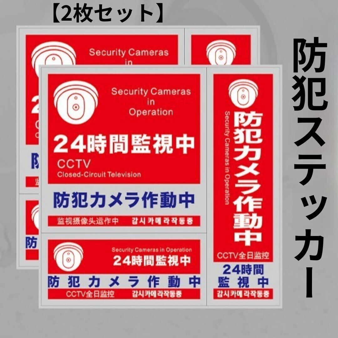 - 防犯ステッカー 防犯シール 4か国語対応 2枚セット 監視カメラセキュリティステッカー 耐光・耐水仕様