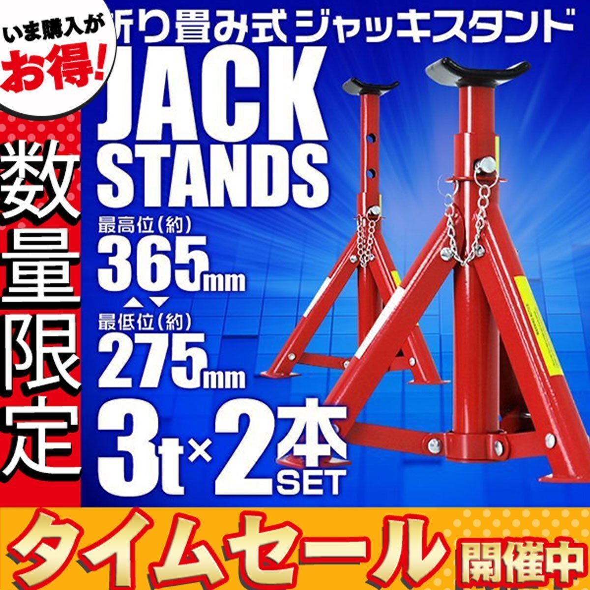 > 【数量限定価格】馬ジャッキ 2基セット スタンド 3t 3トン 折りたたみ式 傷防止ゴム ラバー付 自動車整備 タイヤ交換 3段階調整