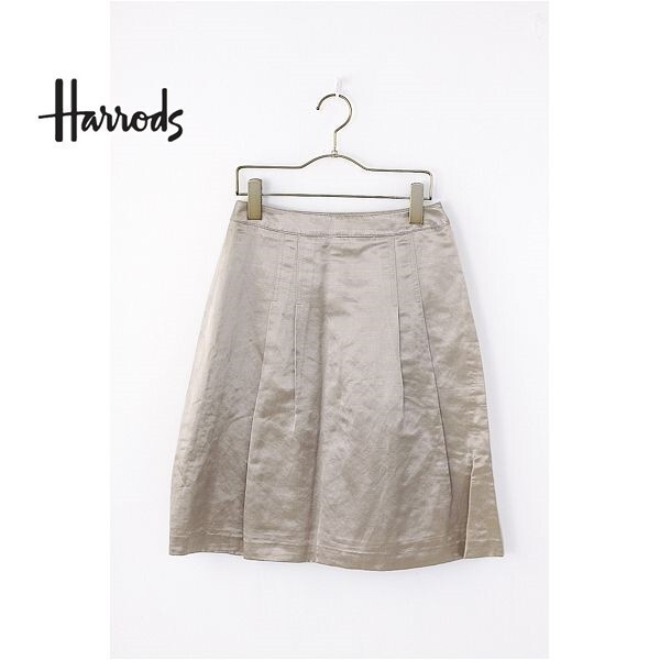- A3232/美品 春夏 Harrods ハロッズ リネン コットン タック プリーツ 膝丈 ミモレ丈 台形 Aラインスカート 2 ブロンズ/日本製 レディース