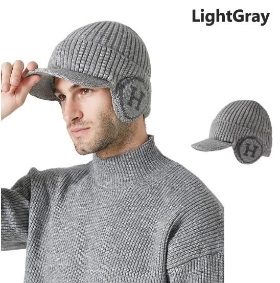 > ツバ付き ニットキャップ ニット帽 ライトグレー ワッチキャップ 帽子 アウトドア ユニセックス メンズ レディース 男女兼用 n820