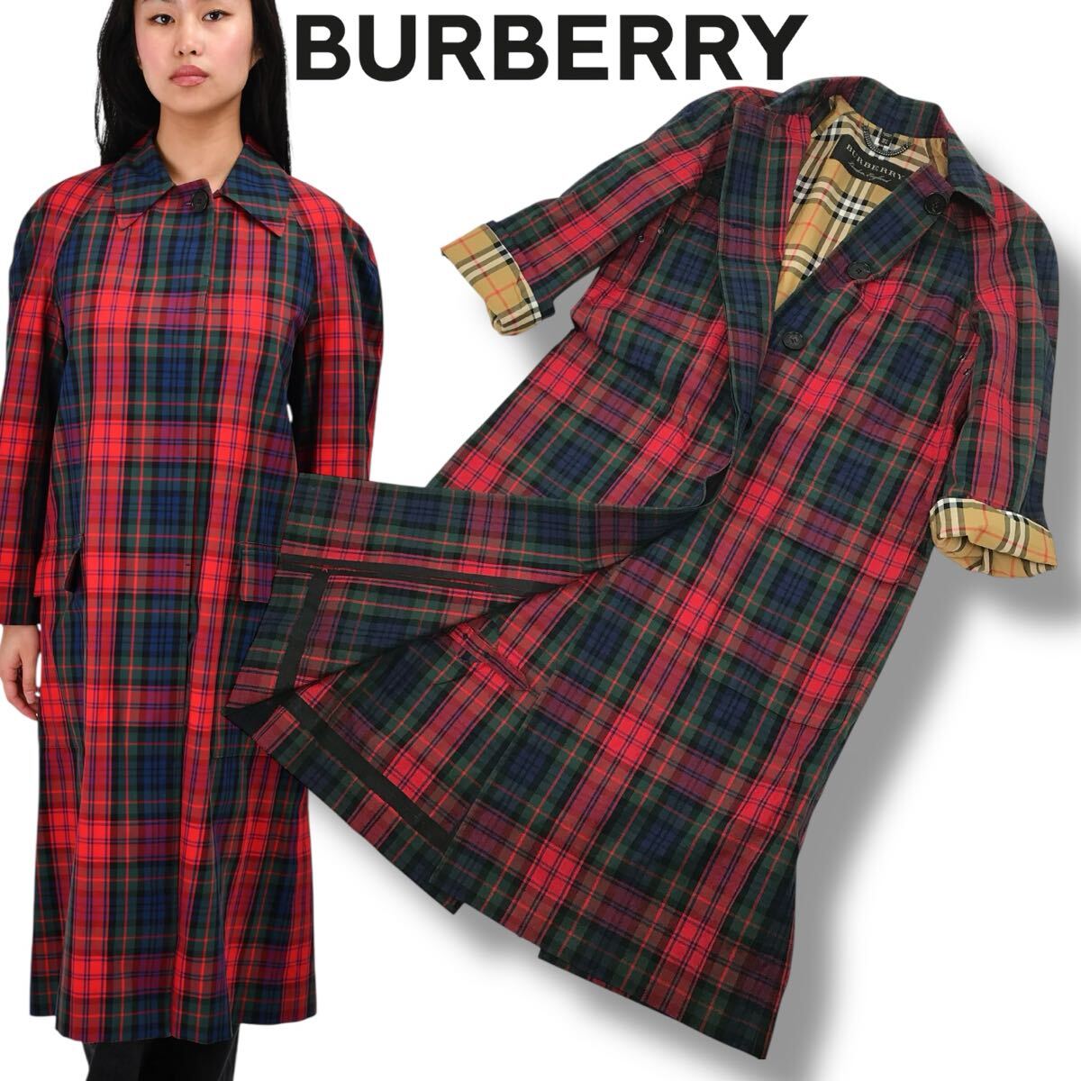> e207 BURBERRY LONDON England バーバリー チェック柄 ステンカラーコート ジャケット アウター UK4 イタリア製 正規品 レディース
