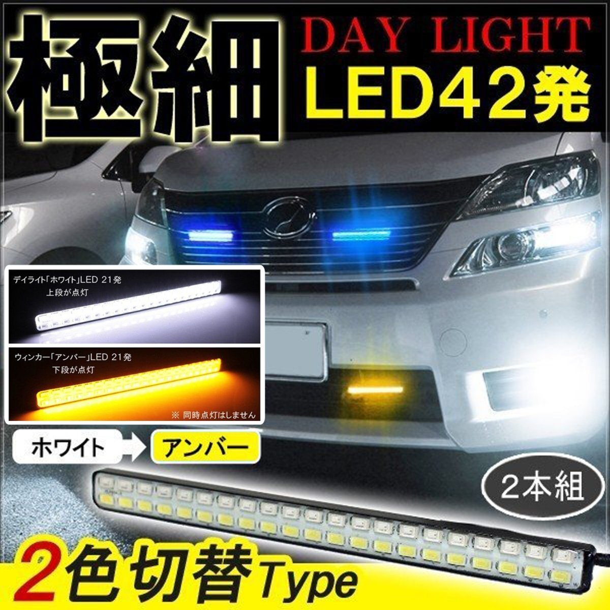 > ヴェルファイア アルファード 20系 デイライト led 2色発光 ホワイト×アンバー 極細 面発光 SMD42灯 左右セット