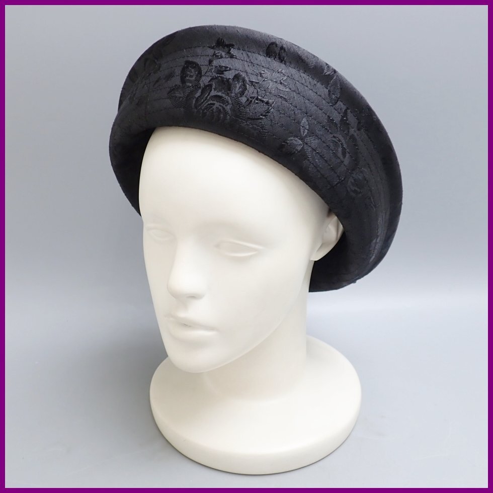 - ★GINZA Vogue/銀座ボーグ 帽子 頭周り約56cm/ブラック/花柄/刺繍/フラワーモチーフ/リボン/外箱付き/ハット&2187400006