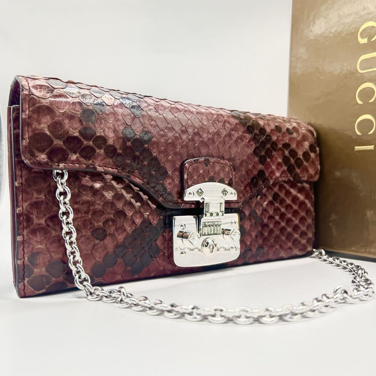 - 【希少美品】GUCCI チェーンウォレット 長財布 パイソン 蛇 シルバーチェーン レディロック ボルドー グッチ 本革 エキゾチックレザー
