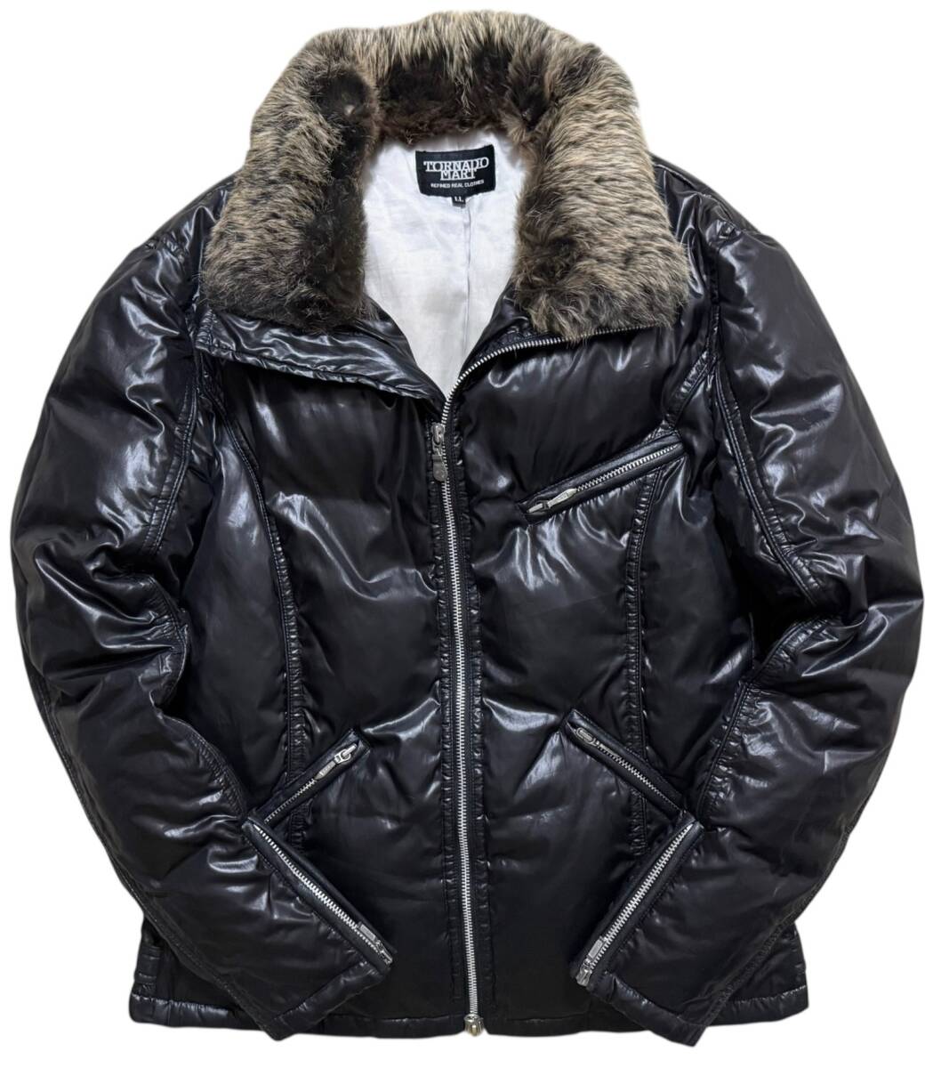 - TORNADO MART トルネードマート ファー取り外し可能 ダブルジップ ダウンジャケット ライダースジャケット LL ブラック