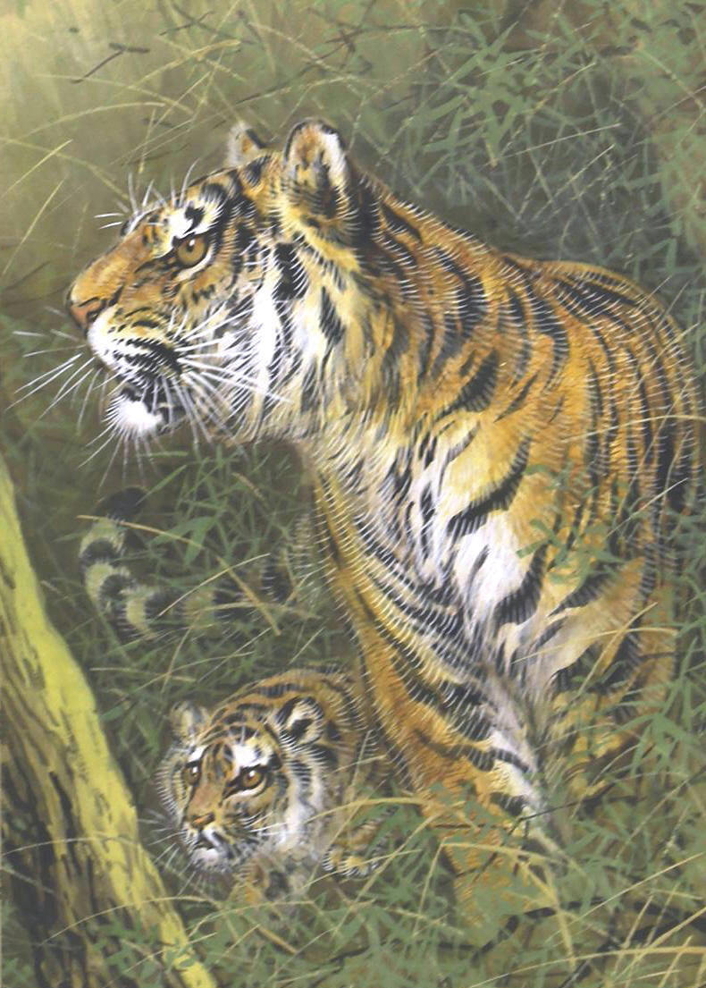 - 【真作】 三尾呉石 虎図 日本画 掛軸 合わせ箱 本物保証 花鳥 絵画