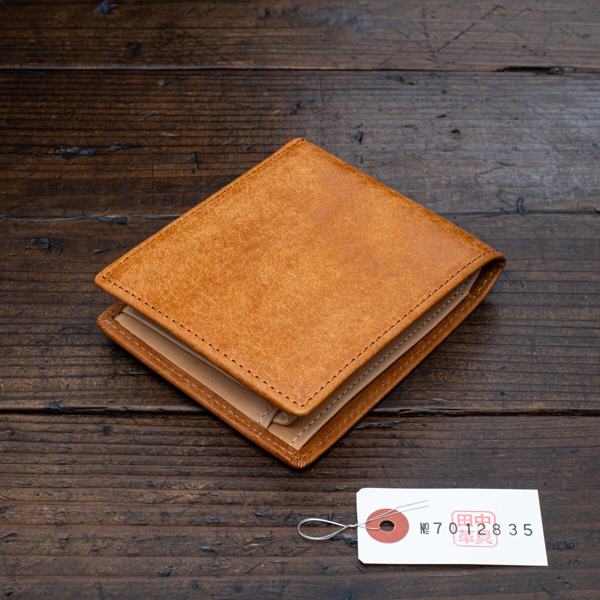 - バケッタレザー【牛革】キャメルブラウン メンズ 財布 二つ折り財布 新品 未使用 送料無料 1円 茶 本革 田中革具