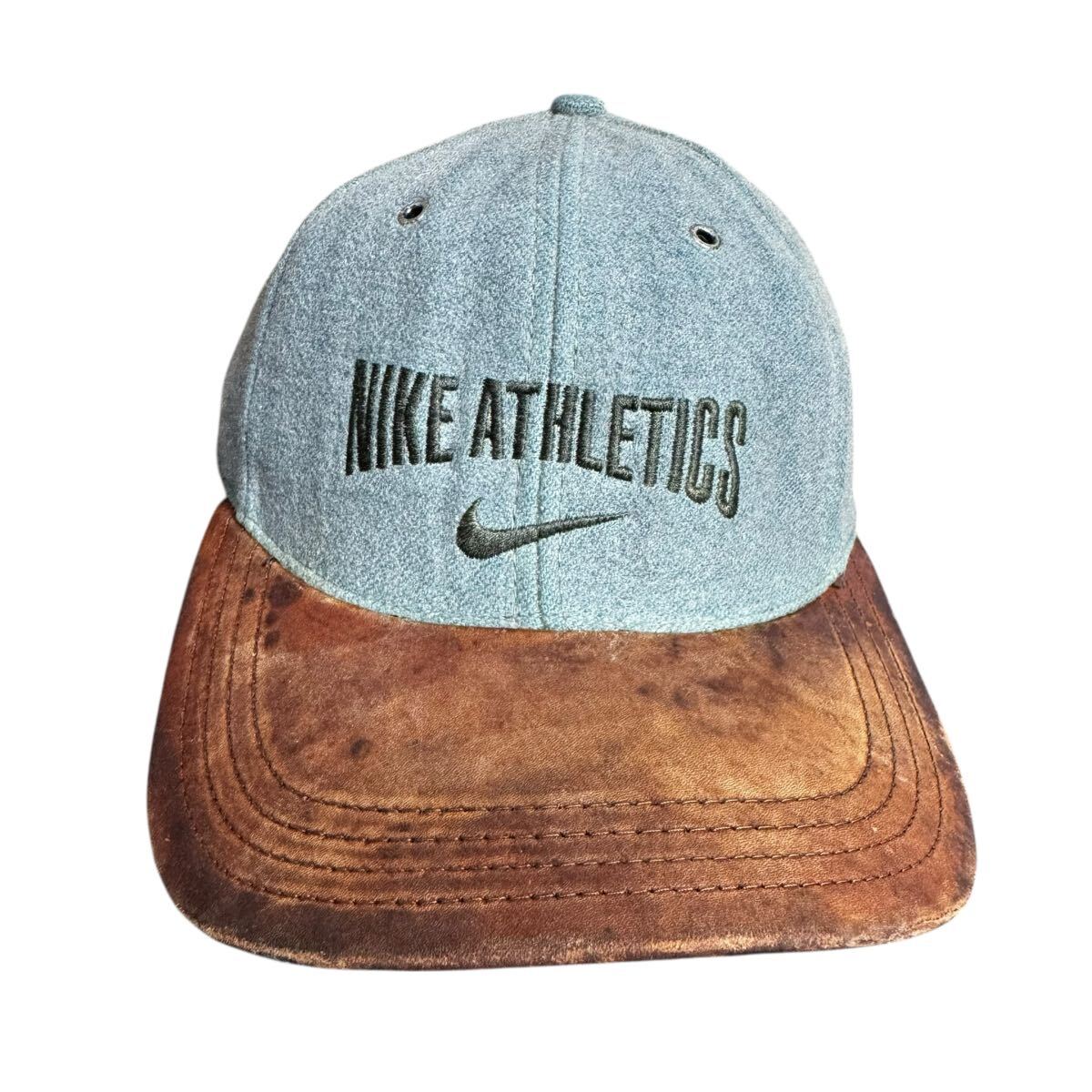 - 90s NIKE Athletic ナイキ CAP キャップ 刺繍 ツートン 白タグ つばウラ緑 6パネル スウッシュ vintage 帽子