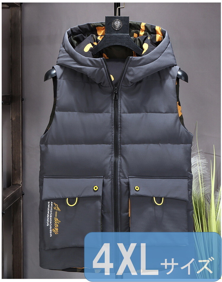 - リバーシブル メンズ ダウンベスト 998 グレー 4XLサイズ 中綿ダウン 中綿ベスト キルティング アウター 防寒 秋冬 暖かい