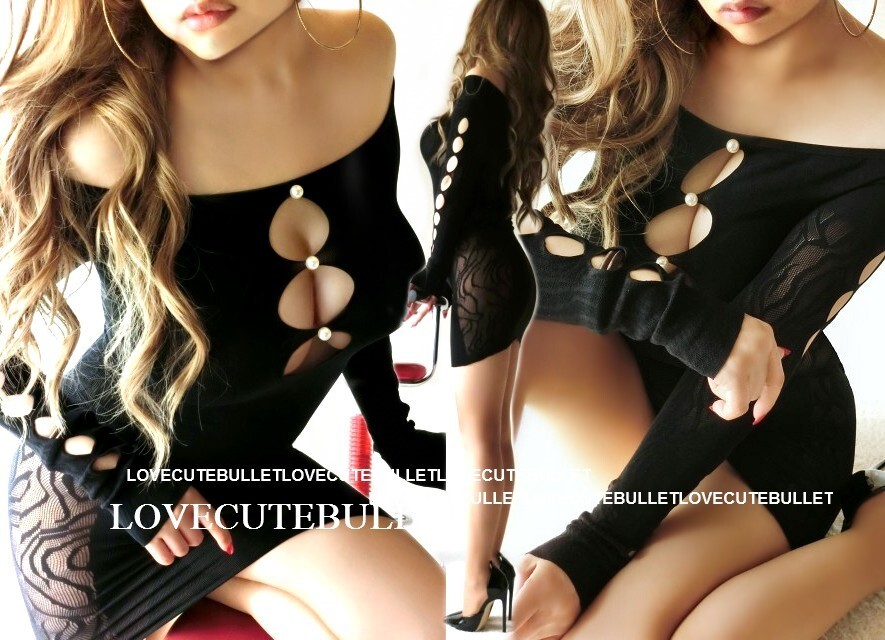 - ボディピタ密着フィットBLACKスタイル谷間カットsexyサイド透けボディコンミニ魅惑ボディストッキングワンピ