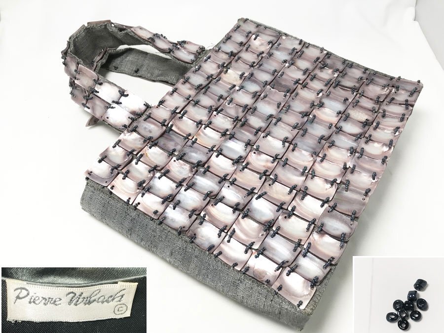 - ◆Pierre Urbach ピエール ウルヴァシュ マザーオブパール ビーズ スクエア バッグ 白蝶貝 天然素材 ヴィンテージ ハンドル難あり