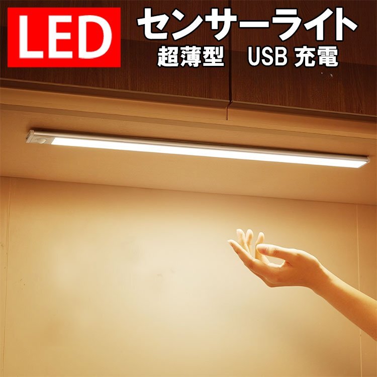 - LEDセンサーライト 80cm 人感 調光 薄型 USB充電式 LEDバーライト 配線工事不要 小型 室内 玄関 足元灯 クローゼット 廊下 HW80D