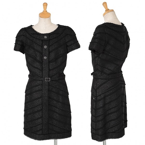 - シャネルCHANEL フレンチスリーブツイードワンピース 黒38