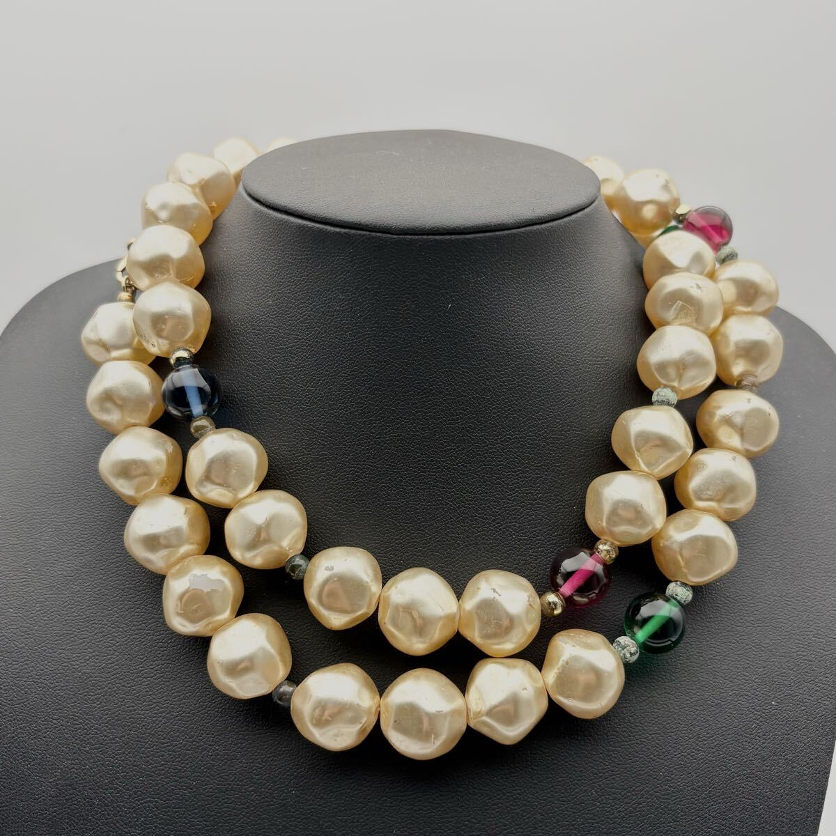 > 【希少】Christian Dior クリスチャンディオール ネックレス 大粒 パール カラーストーン 大ぶり ゴールド コスチュームジュエリー