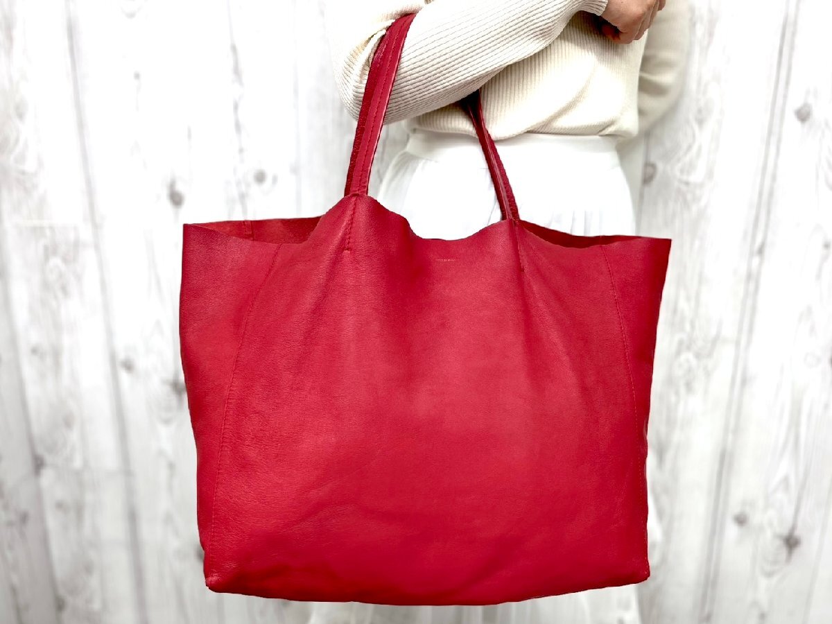 - 極美品 CELINE セリーヌ ホリゾンタルカバ トートバッグ ショルダーバッグ バッグ レザー 赤 A4収納可 96415