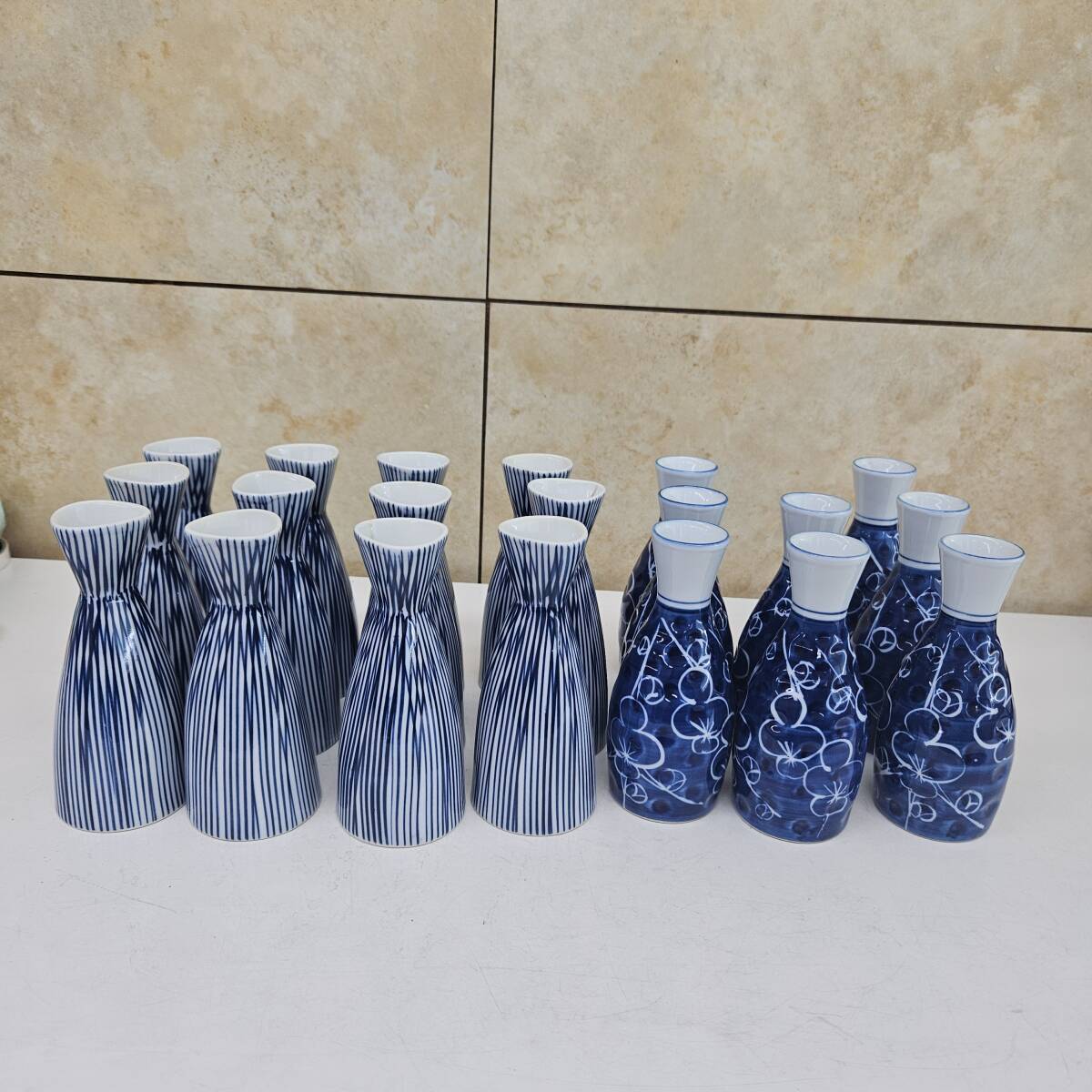 【傷あり】 徳利 酒器 青 白 梅柄 線 【セット】