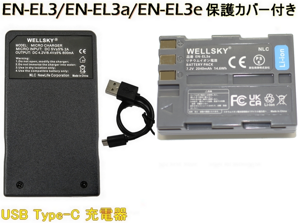 - EN-EL3 EN-EL3e EN-EL3a 互換バッテリー 1個 + MH-18 MH-18a 超軽量 USB Type-C 互換充電器 1個 Nikon ニコン D700 D90 D300 D300s