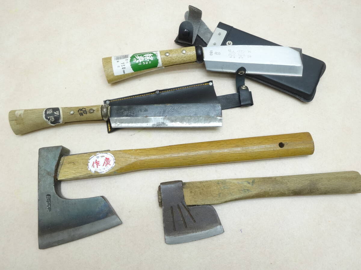 - ☆鉈 斧 薪割り ナタナイフ 4点 鞘付き 古道具 アウトドア 山林 手鉈 JAPAN