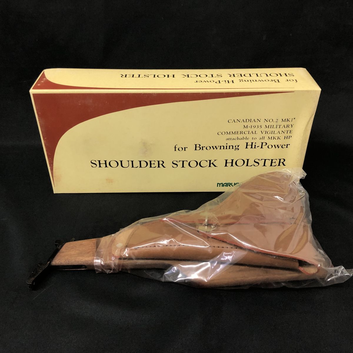 > BBm087Y 80 ⑪ 箱付き 未使用 MARUSHIN SHOULDER STOCK HOLSTER マルシン ホルスター ブローニング ハイパワー用 革 木製 ミリタリー