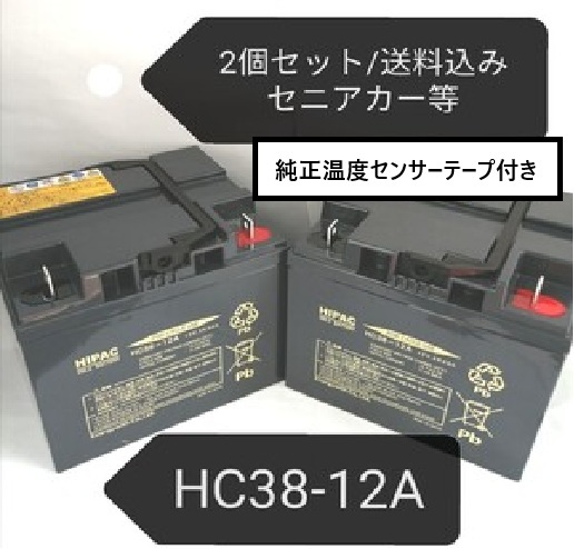 - 【2個セット/温度センサーテープ付】HC38-12A/セニアカー//バッテリー/日立/SC38-12/NP38-12/PE12V40/SER38-12/シニアカー/電動車いす